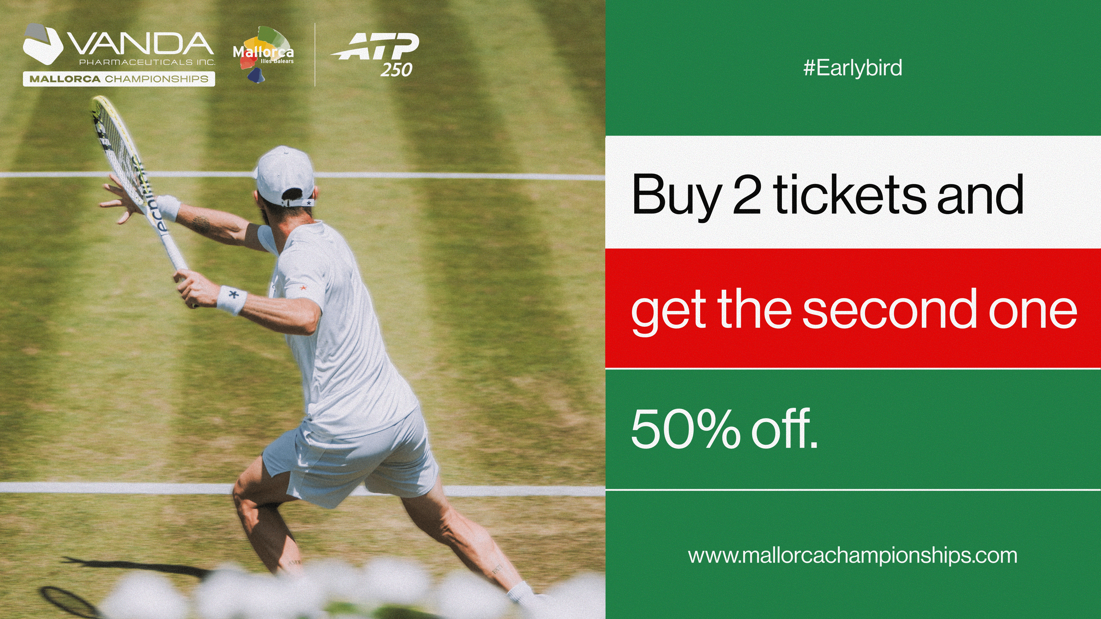 Ticket sales for the Mallorca Championships are officially open – be among the first to purchase yours and enjoy an exclusive 20% discount (offer valid until January 31). The ATP 250 tournament will take place from June 21 to June 28 at Mallorca Country Club in Santa Ponça.