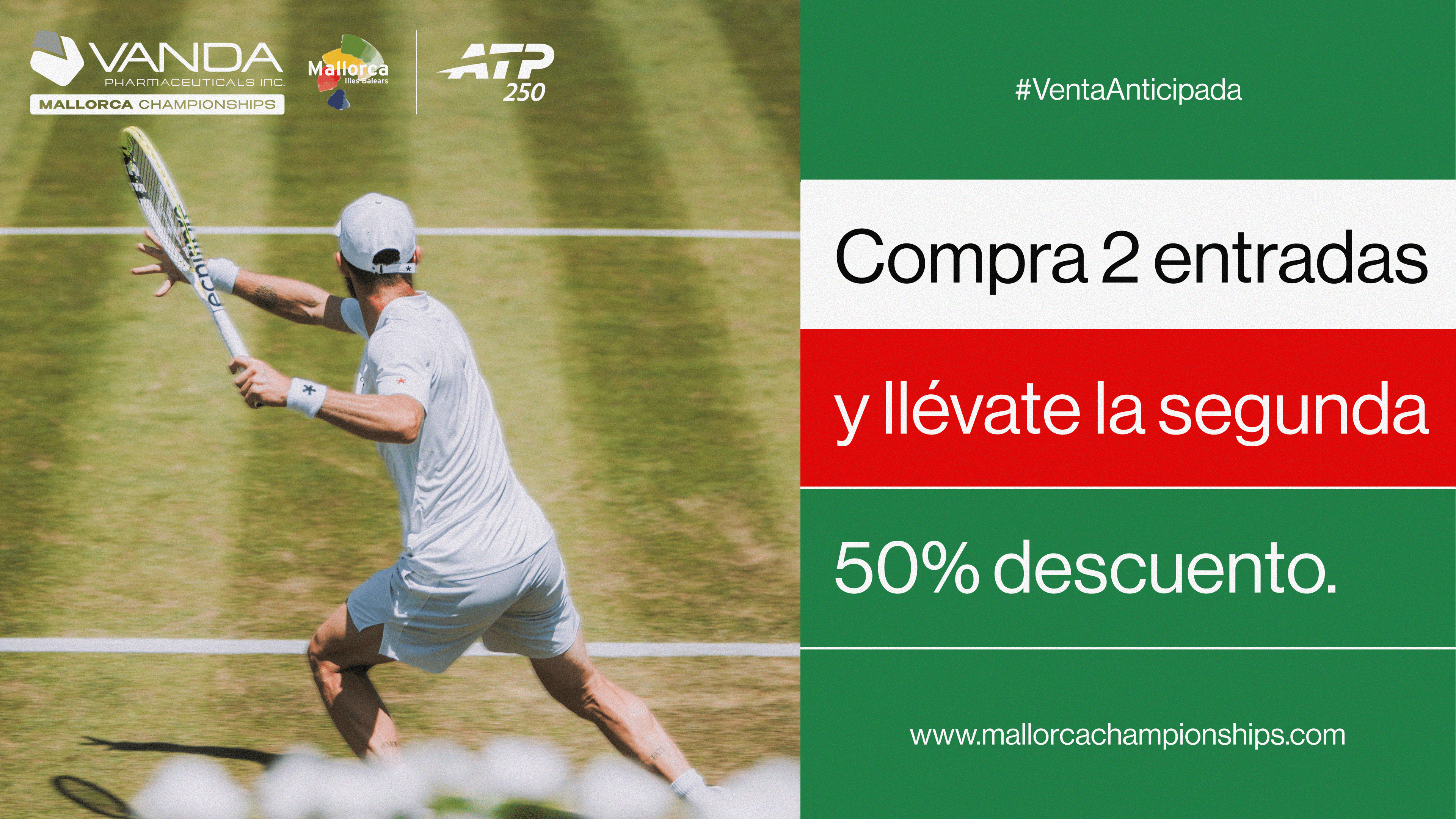 Las entradas para el Vanda Pharmaceuticals Mallorca Championships 2026 ya están disponibles en la página web, con descuentos exclusivos por venta anticipada hasta el 28 de diciembre para los aficionados que deseen disfrutar de una semana de tenis de primer nivel en las pistas de hierba del Mallorca Country Club, en el corazón del Mediterráneo.